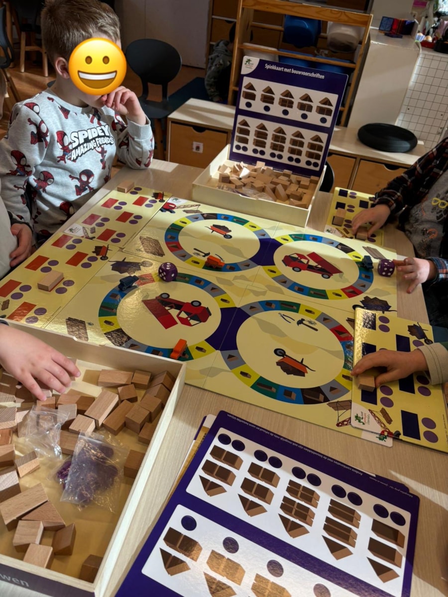 Zo oefenden we met synchroon tellen, bouwen en vormen. Spelenderwijs werken we aan het rekenbegrip! 🎲🔢